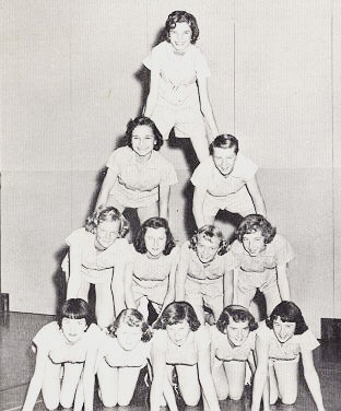 Physical education offers a variety of different skills. The activities which include basketball, valley ball, tumbling, ping-pang, softball, badminton, dancing, and tennis, are afforded to girls. Since such a varied schedule is afforded, the student is introduced to a wider range of knowledge about sports. The object and rules of each sport are explained, thus giving the student a better understanding of athletics, which in turn gives him a better appreciation towards sports. For each activity, new skills are learned and older ones are more fully developed. Both boys and girls participate in calisthenics which help develop body movements and co-ordination. The boys indulge in more strenuous sports like football, baseball, and wrestling. Contests ore conducted in the gym classes for almost every form of activity. Competition among the chosen squads stimulates the students interest and leads to a competitive spirit.Because one of the chief purposes of physical education training is to obtain better health, a study of health is required of freshmen and sophomores. Sophomores study the function and core of the body, while the freshmen's main course is first aid. |