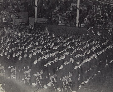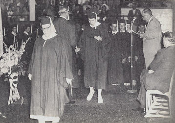 | To the strains of "Pomp and Circumstance" the 228 members of Class of 1955 marched in for their graduation from Washington High School on June 2. The Reverend Kermit Graves gave the invocation and benediction. The Commencement Address was given by Dr. Joseph Kise of Moorhead State Teachers' College. He numerated five characteristics of man as being physical, economic, intellectual, spiritual, and social-political. To develop the potentialities intended by God and nature, these five phases of life must be developed. He touched on atomic development as playing a part in the great future ahead for young people. He concluded by telling the graduates that if they will use their brains, they can attain an undreamed of standard of living, but if they do not, they will go down to destruction. The class was then presented by Mr. Blackford to the President of the Board of Education, Mr. Charles Herbison, who granted the diplomas.